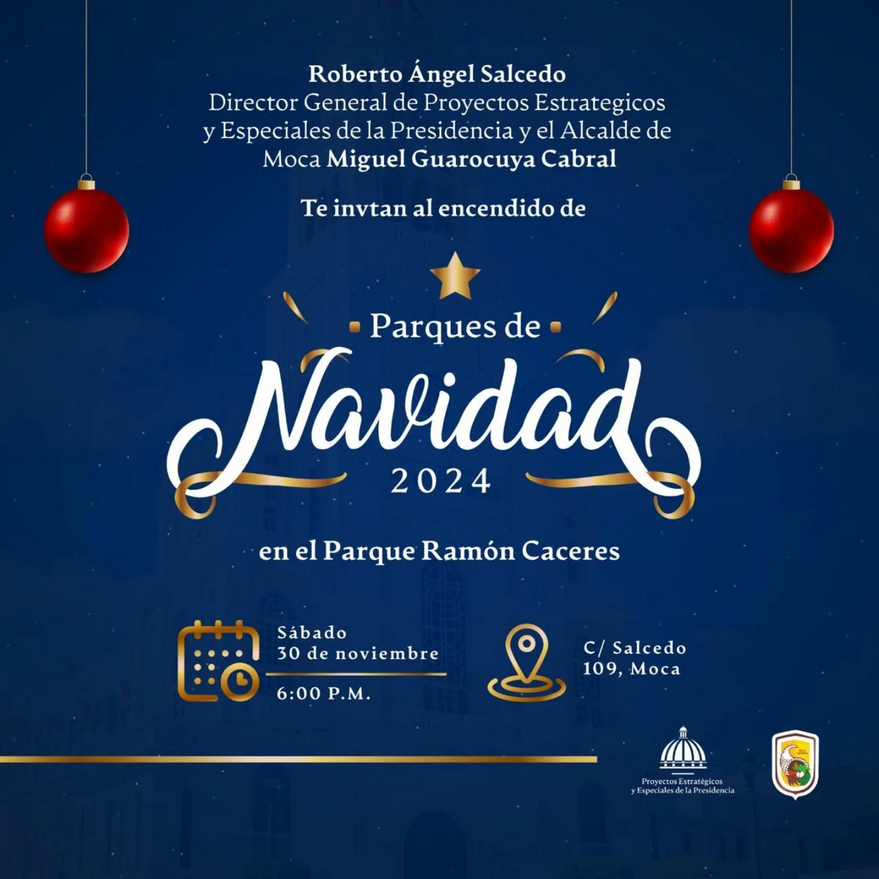 📍 Lugar: Parque Ramón Cáceres, Calle Salcedo #109, Moca 📅 Fecha: Sábado 30 de noviembre ⏰ Hora: 6:00 p.m.