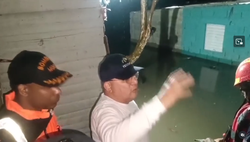 El alcalde de Moca, Miguel Guarocuya Cabral, realizó un recorrido por la zona de La Joyita de la piscina, tras las inundaciones provocadas por las intensas lluvias que han afectado a varias familias.