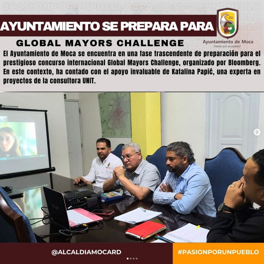 El Ayuntamiento de Moca se encuentra en una fase trascendente de preparación para el prestigioso concurso internacional Global Mayors Challenge, organizado por Bloomberg. En este contexto, ha contado con el apoyo invaluable de Katalina Papić, una experta en proyectos de la consultora UNIT.