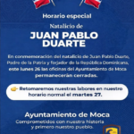 4 febrero, 2026 Moca,26/01/26. Natalicio de Juan Pablo DuarteEn conmemoración del natalicio de Juan Pablo Duarte, Padre de la Patria y forjador...