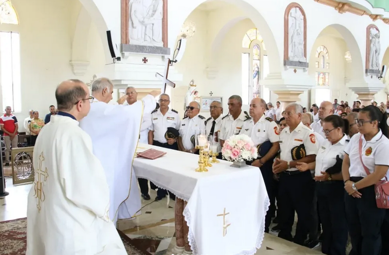 La ceremonia contó con la presencia del alcalde Miguel Guarocuya Cabral y una destacada representación de los bomberos locales, incluyendo al coronel intendente Félix «Nacho» Guzmán y al coronel Conrado Cruz del cuerpo de bomberos voluntarios. Junto a ellos, asistieron oficiales, suboficiales y bomberos de primera línea, quienes se unieron en un acto de fe y agradecimiento.