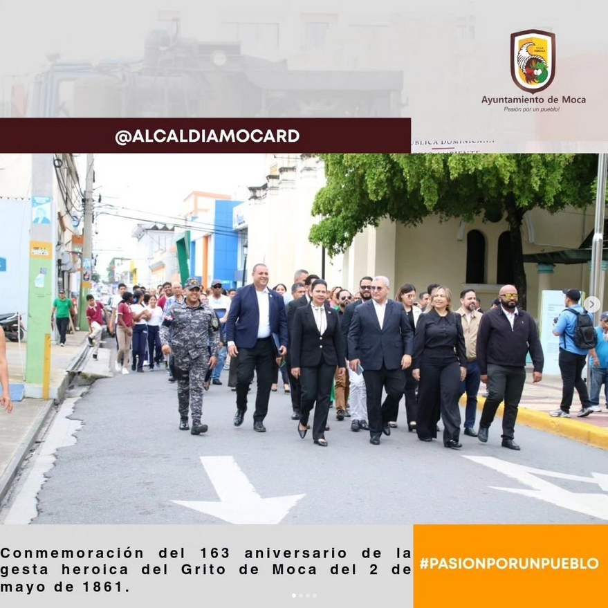 Imágenes de la conmemoración del 163 aniversario de la gesta heroica del Grito de Moca del 2 de mayo de 1861, con la presencia del alcalde Guarocuya Cabral, la gobernadora doña Juana Rosario de Candelier, la vicealcaldesa Belkis Candelier, regidores del cuerpo orgánico municipal, miembros de los grupos castrenses, estudiantes y profesores de escuelas, Institutos y politécnicos de la ciudad. Se realizó un Tedeum de Acción de Gracias y la entrega de reconocimiento anual del premio 2 de mayo al Politécnico Profesor Andrés López de El Corozo, Moca, como institución educativa modélica.