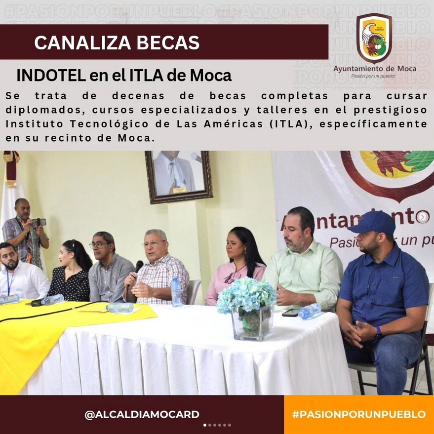El Ayuntamiento de Moca Canaliza Decenas de Becas ofrecidas por INDOTEL para Estudiantes en el Recinto ITLA de Moca!!!