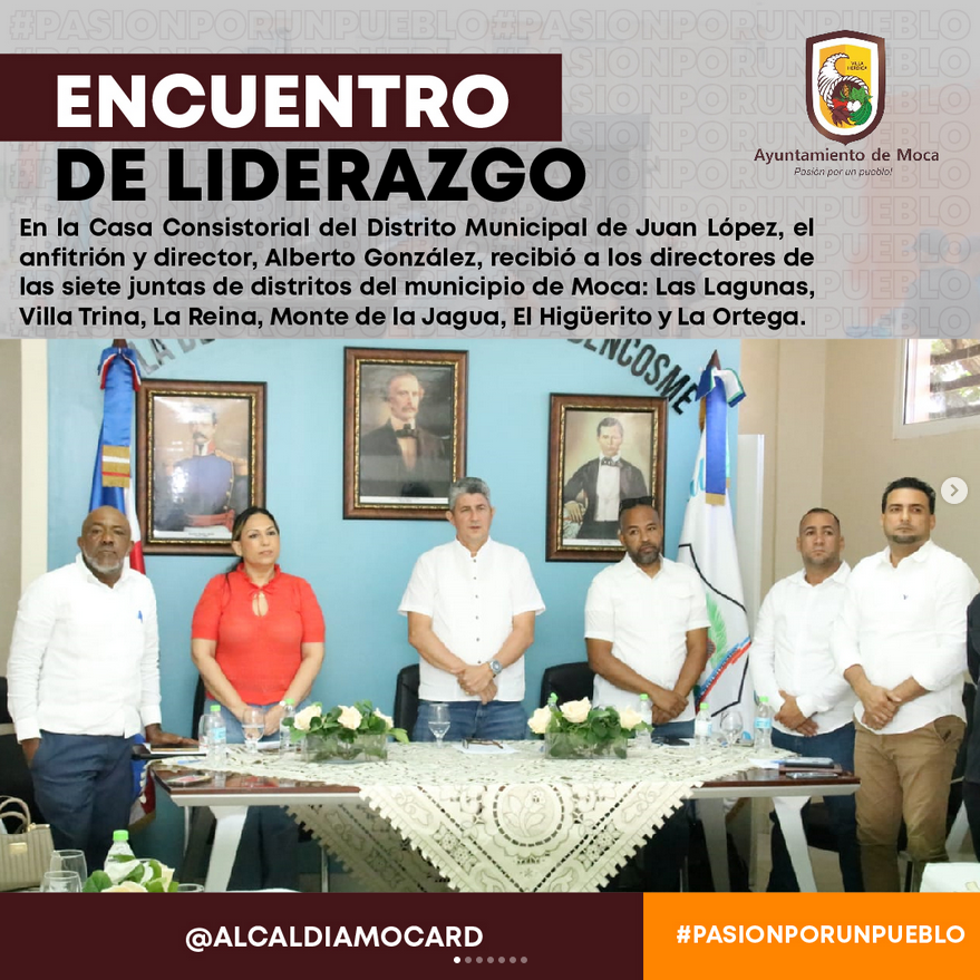En la Casa Consistorial del Distrito Municipal de Juan López, el anfitrión y director, Alberto González, recibió a los directores de las siete juntas de distritos del municipio de Moca: Las Lagunas, Villa Trina, La Reina, Monte de la Jagua, El Higüerito y La Ortega. También participaron la vicealcaldesa del ayuntamiento de Moca, en representación del alcalde Guarocuya Cabral, y directores provinciales de diversas sectoriales en Espaillat.
