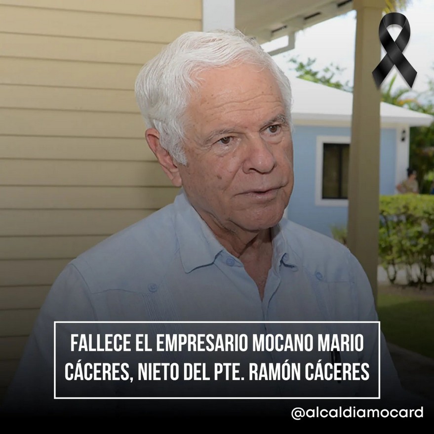 Fallece el famoso empresario Mocano Mario Cáceres, quien fue nieto del presidente Ramón Cáceres. Desde el Ayuntamiento de Moca nos solidarizamos con su familia deseándole la mayor fortaleza.
