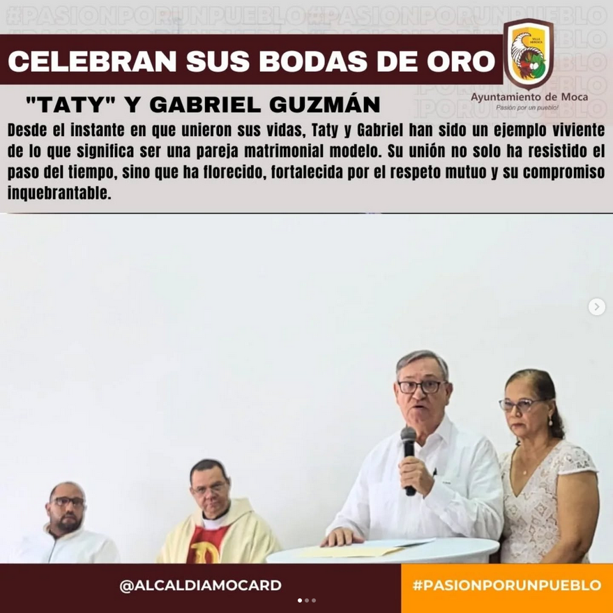 Por esta razón, el Ayuntamiento de Moca les rinde homenaje, destacando no solo su longevidad como pareja, sino la calidad de vida y ejemplo que han brindado a su alrededor. Doña Taty y don Gabriel nos enseñan que una familia unida tiene el poder de convertirse en un pilar para el país, mostrándonos que a través del amor y la colaboración, podemos alcanzar un futuro mejor y más esperanzador para todos.