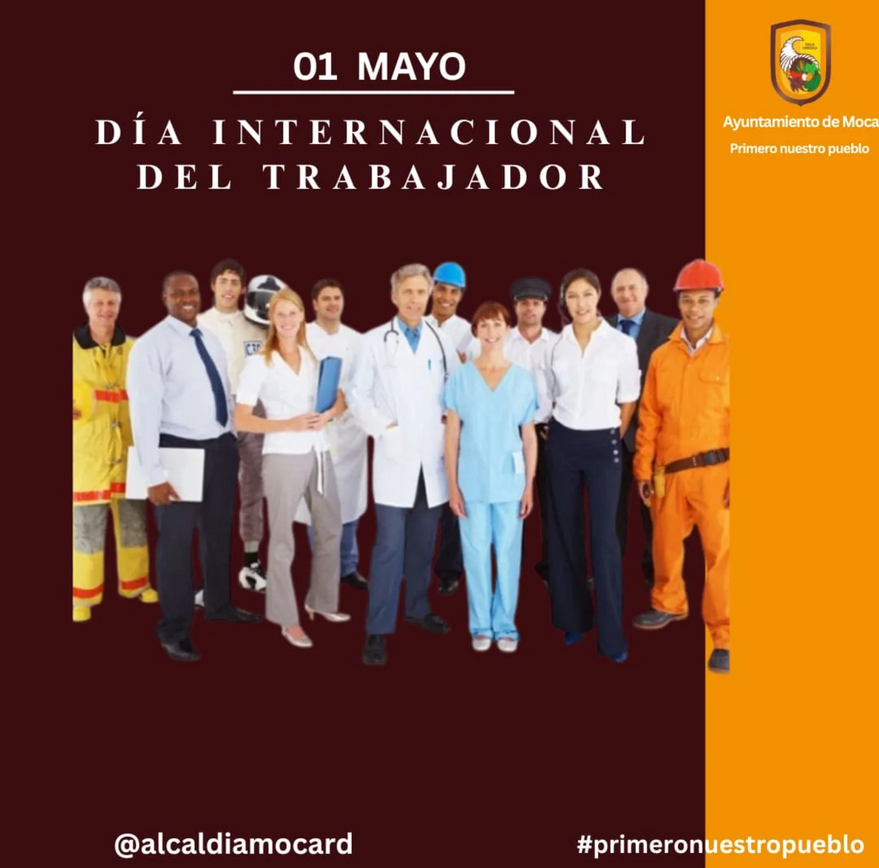 Desde la Alcaldía de Moca, en nombre de nuestro alcalde Miguel Guarocuya Cabral, felicitamos a cada trabajador y trabajadora mocana que, con esfuerzo, entrega y dignidad, contribuye al crecimiento y desarrollo de nuestro querido municipio.