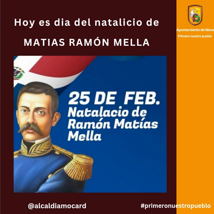 ¡Hoy celebramos el natalicio de Matías Ramón Mella! Desde la Alcaldía de Moca, queremos agradecer su liderazgo, compromiso y dedicación a nuestra patria. Su labor incansable es un ejemplo que nos inspira a trabajar unidos por un futuro mejor. ¡Feliz natalicio, Matías Ramón Mella!#primeronuestropueblo #Moca #Liderazgo #Compromiso