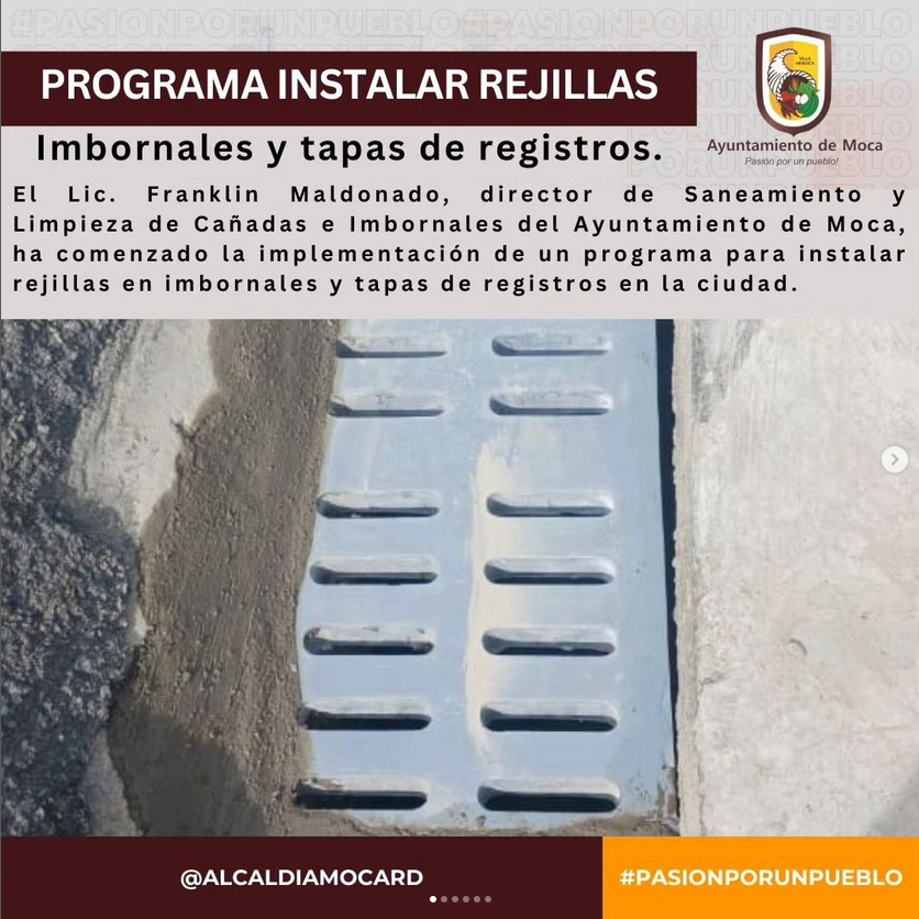 El Lic. Franklin Maldonado, director de Saneamiento y Limpieza de Cañadas e Imbornales del Ayuntamiento de Moca, ha comenzado la implementación de un programa para instalar rejillas en imbornales y tapas de registros en la ciudad.