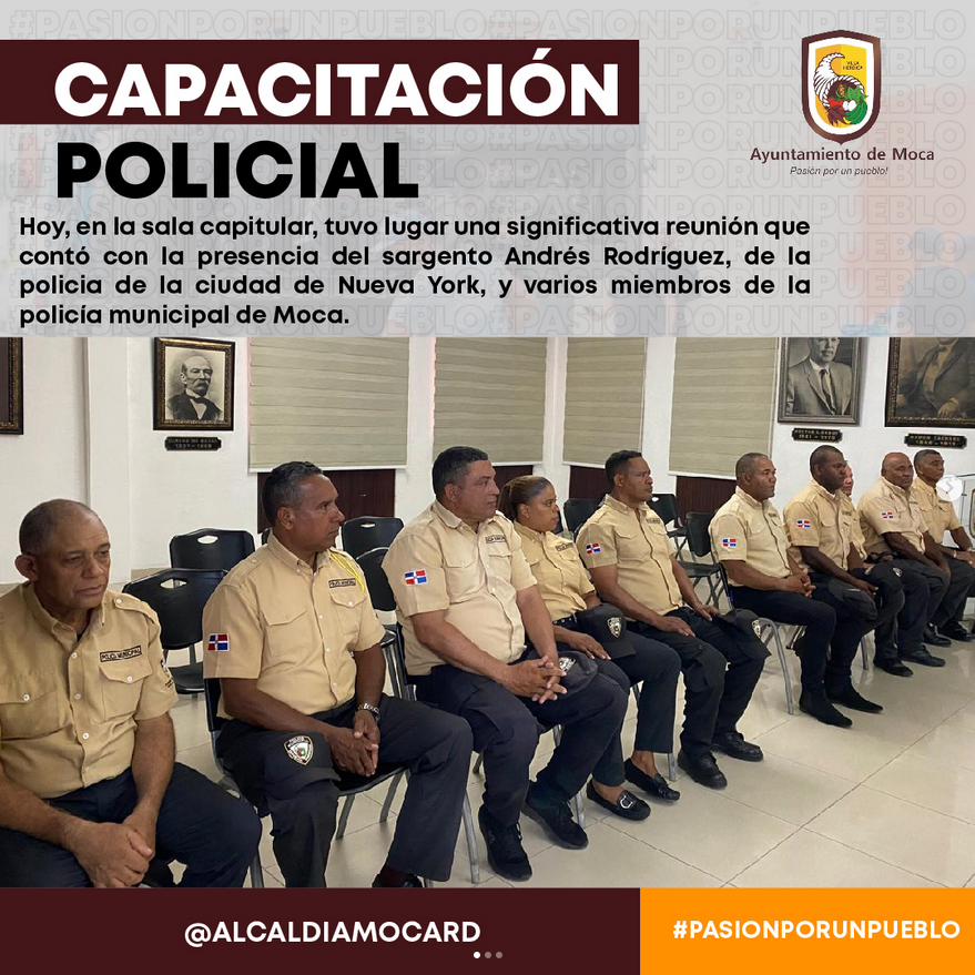 Continuaremos informando sobre los avances y resultados de estas importantes sesiones de conocimiento y capacitación a la Policía Municipal de Moca, que tiene el aval del alcalde Guarocuya Cabral y la coordinación del capitán Batista de la Policía Municipal.