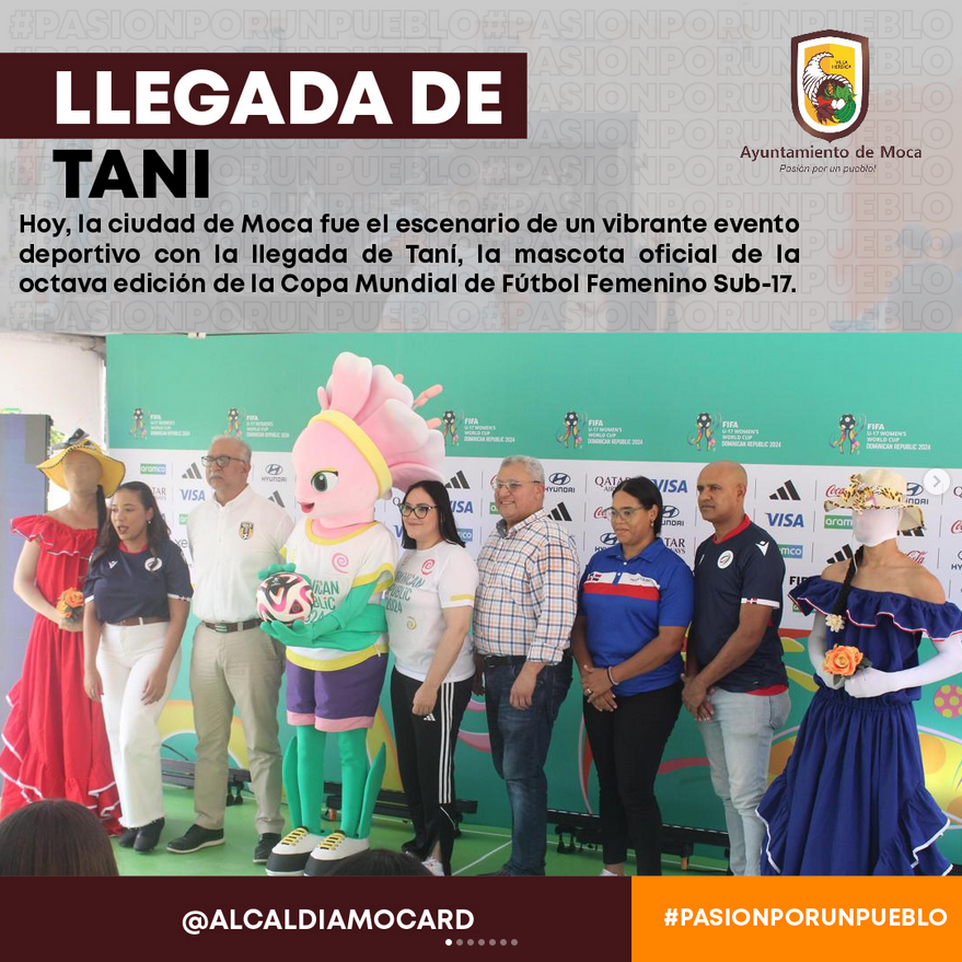 Este acto simboliza el compromiso de Moca con el desarrollo del fútbol femenino y resalta su papel como un pilar fundamental del deporte a nivel nacional e internacional. Con la llegada de Taní, la ciudad se prepara para recibir con entusiasmo y espíritu deportivo este esperado torneo mundial desde el 16 de octubre al 3 de noviembre de 2024.