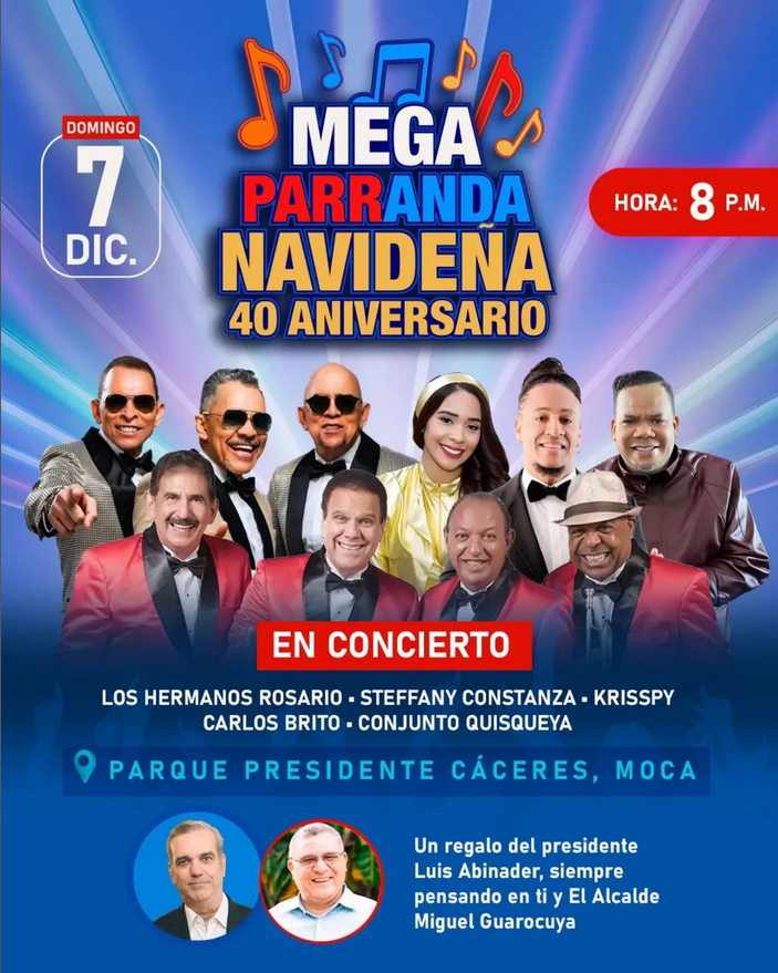 Este evento es un regalo especial para la comunidad, auspiciado por el presidente Luis Abinader y el alcalde de Moca, Miguel Guarocuya Cabral.
