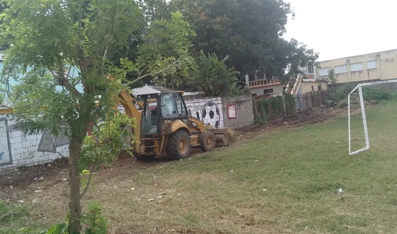 Moca apuesta al desarrollo deportivo: Ayuntamiento acondiciona el play de mini fútbol en el barrio Pulú.