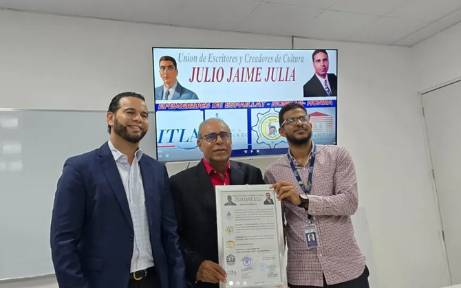 El alcalde Miguel Guarocuya Cabral asistió a una celebración especial organizada por la Unión de Escritores y Creadores de Cultura Julio Jaime Julia en el marco del 140 aniversario de la creación de la provincia Espaillat, dirigida por el investigador Orlando López. El evento, realizado en el Centro Regional ITLA, conmemoró las efemérides culturales de Moca del mes de julio.