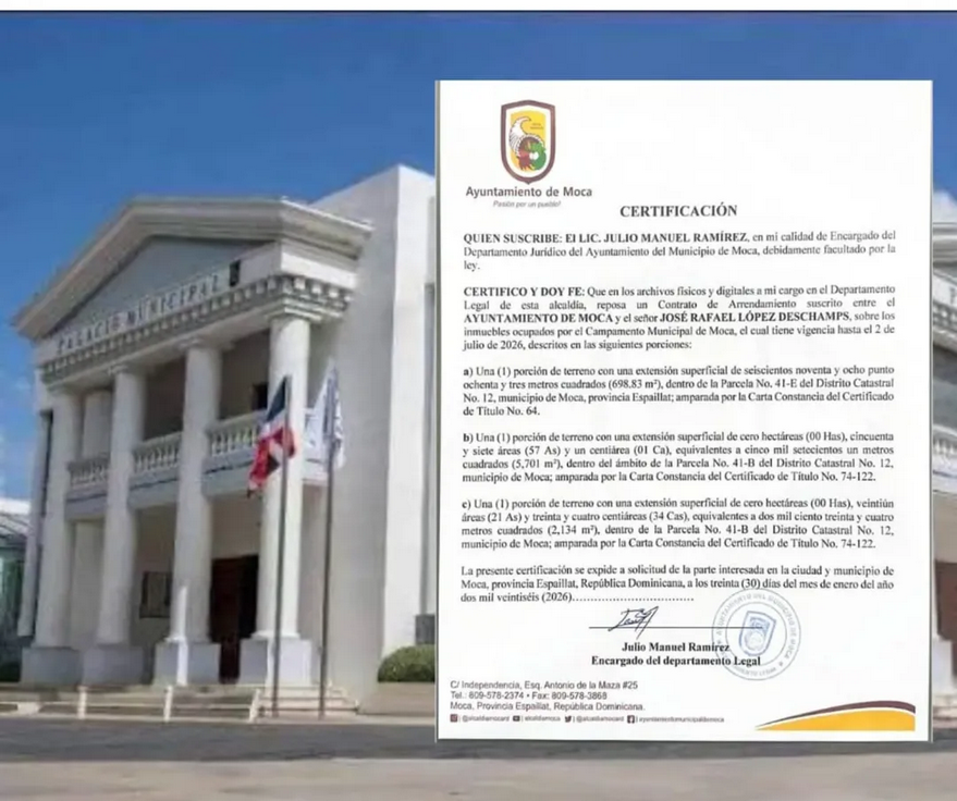 Esta corporación edilicia certifica de manera oficial que dicha propiedad no es patrimonio municipal, sino que se trata de un inmueble arrendado legítimamente a su propietario, el señor JOSÉ RAFAEL LÓPEZ DESCHAMPS. El uso de este espacio por parte de la municipalidad se sustenta en un acuerdo de arrendamiento vigente, cumpliendo con los procedimientos administrativos correspondientes.