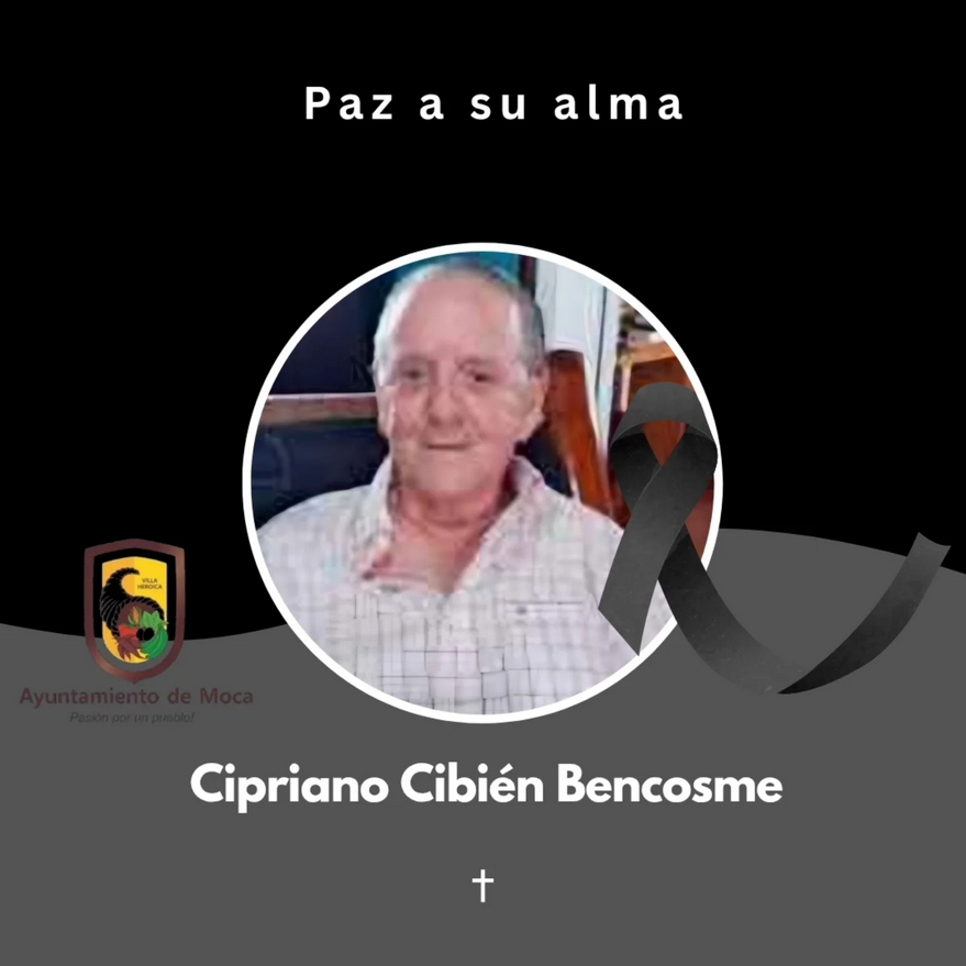 E Ayuntamiento de Moca y el alcalde municipal expresan su más profundo espíritu de solidaridad a la distinguida familia Bencosme —padre, hijos, nietos y demás allegados—, descendientes directos del mártir de la dictadura trujillista, General Cipriano Bencosme, ante el triste y lamentable fallecimiento, de manera accidental, del munícipe mocano Cipriano Cibién Bencosme.