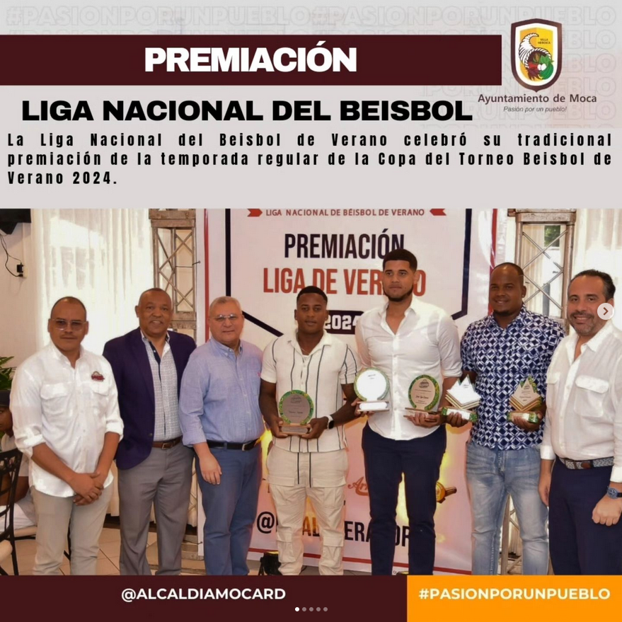 La Liga Nacional del Beisbol de Verano celebró su tradicional premiación de la temporada regular de la Copa del Torneo Beisbol de Verano 2024. El evento estuvo presidido por Alberto Rodríguez Mella, director ejecutivo del Instituto Nacional de Educación Física (INEFI), y Juan Núñez, presidente de la Federación Dominicana de Beisbol, el alcalde de Moca Guarocuya Cabral. También estuvieron presentes Robin Lantigua, dirigente del equipo anfitrión de Moca, peloteros galardonados, dirigentes de los equipos de la Liga de Verano y miembros de la prensa.