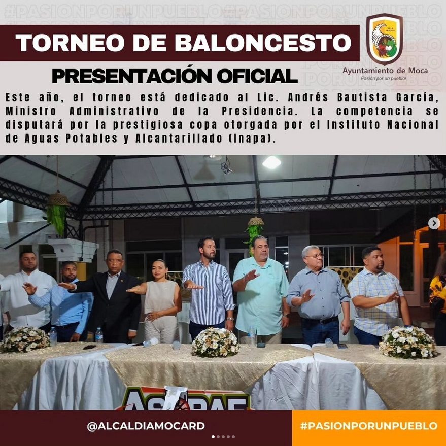 En un evento lleno de entusiasmo, se llevó a cabo la rueda de prensa para anunciar la trigésima edición del Torneo Superior de Baloncesto de la provincia Espaillat. Este año, el torneo está dedicado al Lic. Andrés Bautista García, Ministro Administrativo de la Presidencia. La competencia se disputará por la prestigiosa copa otorgada por el Instituto Nacional de Aguas Potables y Alcantarillado (INAPA).