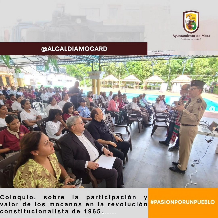 Un importante coloquio, sobre la participación y valor de los mocanos en la revolución constitucionalista de 1965, fue realizado por la Unión de Escritores Dr. Julio Jaime Julia, y coordinado por el escritor y poeta Orlando López. El acto fue bendecido por el obispo del pueblo, el sacerdote mocano Rogelio Cruz. Y se destacó la figura del valiente coronel Juan Maria Lora Fernández, héroe constitucionalista, de la estirpe de La Ortega-El Higüerito, Moca. Las palabras de bienvenida fueron expresadas por el alcalde Guarocuya Cabral. Estuvieron presentes el coronel ERD Juan Lora, hijo del héroe Lora Fernández, el radiodifusor Papi Mireles, Lic. Amable Guzmán, presidente de Adepe, el profesor José Rafael Matías Comprés, escritor Luis Bencosme, Deyanira Ovalles, directora provincial de cultura, entre nunerosos invitados especiales que estuvieron en el importante evento de carácter histórico cultural.